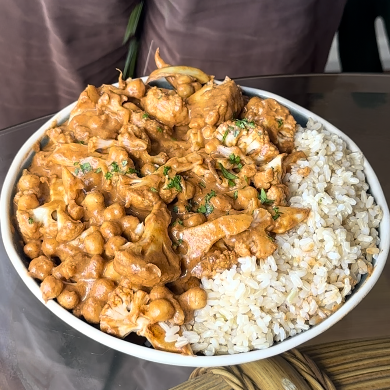 This curry is one of my proudest creations. It’s the perfect weeknight dinner. It’s comforting, makes the kitchen smell so wonderful, and is a great recipe to have on hand for when cauliflowers are in season. It also reheats like a dream, meaning tomorrow’s work lunches are sorted. This sauce is the wonderful work of Nora from Nora Cooks (see original recipe here). I’ve used this sauce to create a warming butter cauliflower. It’s creamy, so full of flavour, and is the perfect way to give cauliflower a little razzle dazzle.